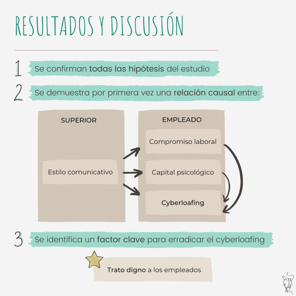 Esta investigación demuestra por primera vez la existencia de una relación causal entre el estilo comunicativo del encargado, el capital psicológico, el compromiso laboral del empleado y la cyberloafing.