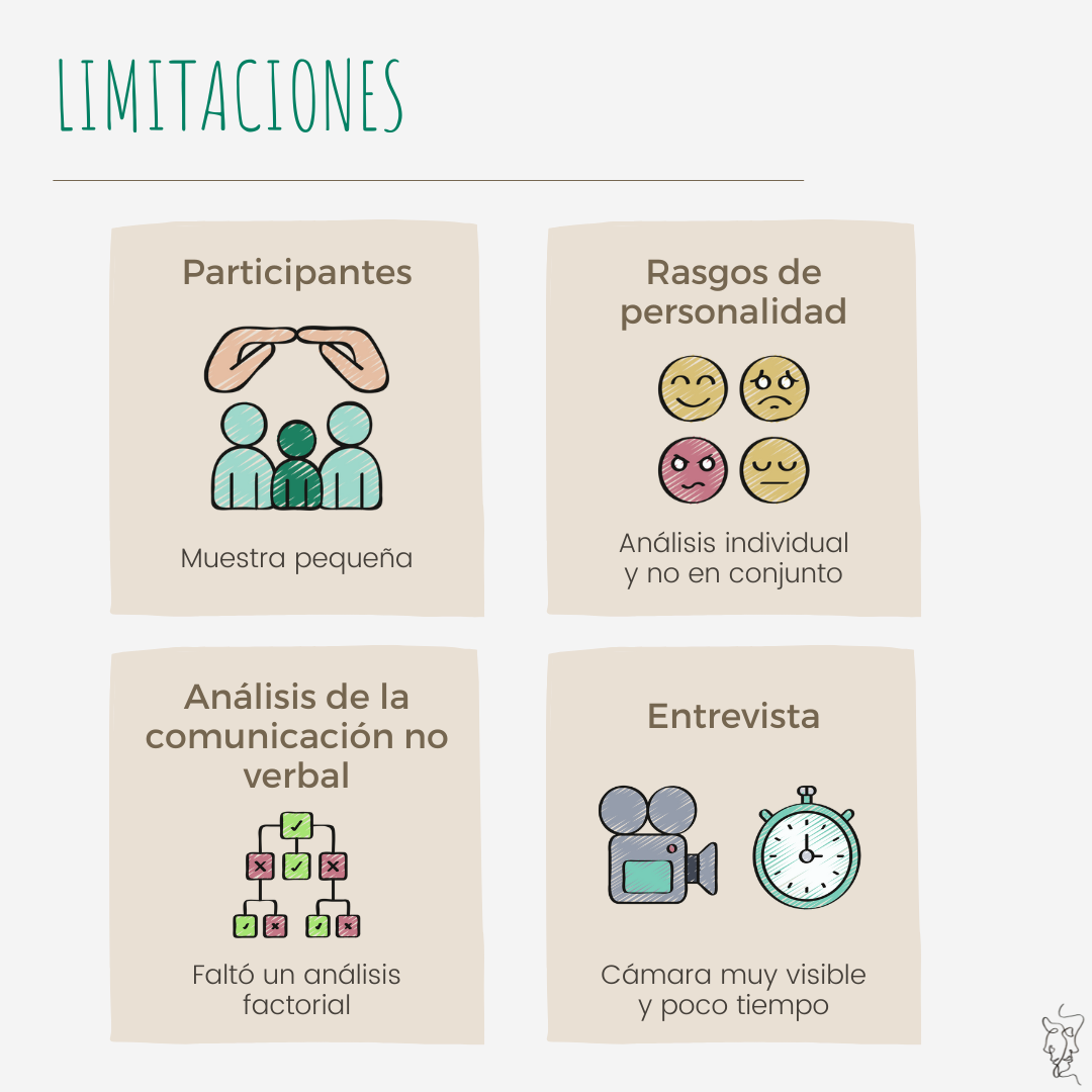 En resumen, los resultados demuestran que los rasgos de personalidad se relacionan con las conductas no verbales. Sin embargo, las evidencias son confusas y no permiten sacar conclusiones claras.