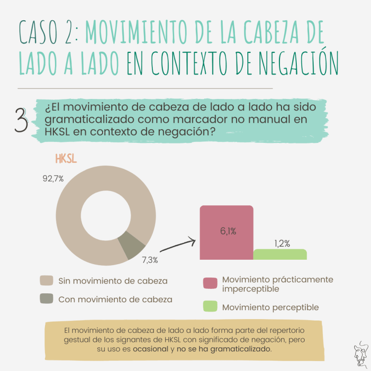 - Primero, se confirma que el movimiento de cabeza de lado a lado no es un gesto universal de negación, pues en HKSL es muy poco frecuente.