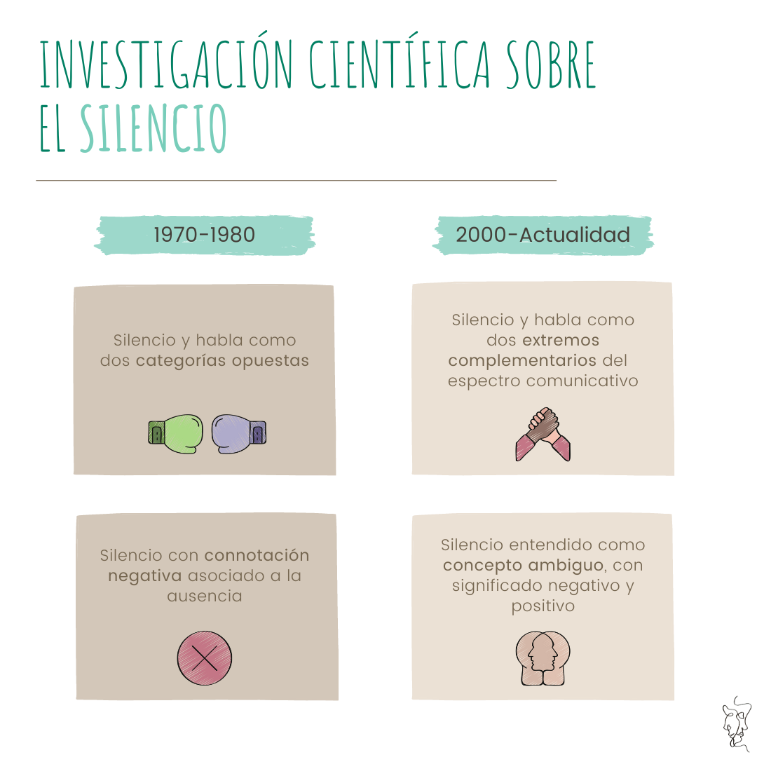 Inicialmente, los académicos e investigadores consideraban el silencio y el habla como dos categorías opuestas. Sin embargo, a finales del siglo XX y principios del siglo XXI, se realizaron estudios para explorar el significado y las funciones del silencio, que ayudaron a cambiar la forma en la que lo percibimos.