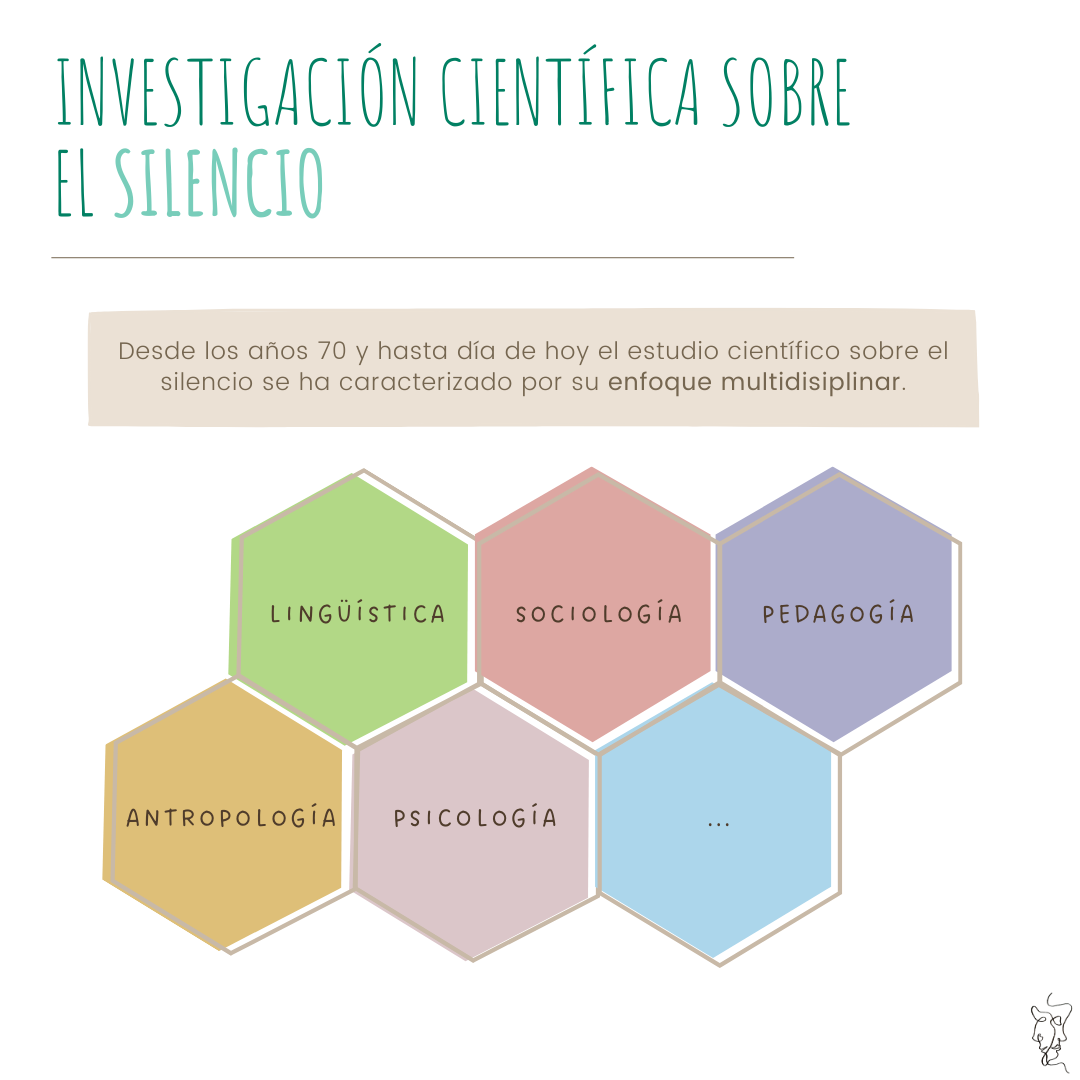 Dado que no ningún ámbito de conocimiento puede describir o analizar el silencio por completo de forma independiente, se han realizado estudios científicos multidisciplinares, combinando diversas disciplinas, como la lingüística, la sociología, la antropología, la etnografía2, y la pedagogía, entre otras.