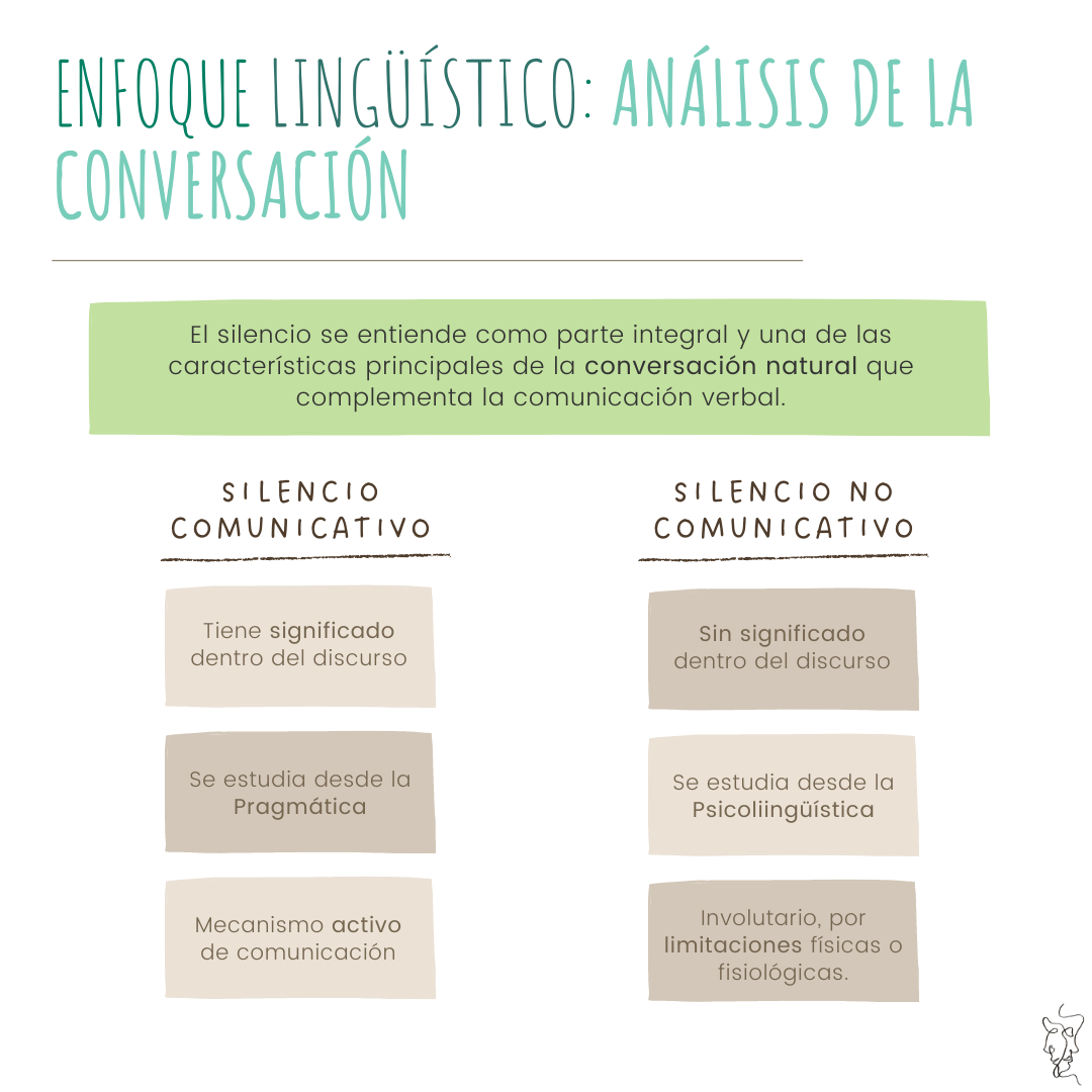 Desde un punto de vista lingüístico, el silencio se considera como una parte integral y una de las características principales de la conversación natural, que tiene diversas funciones informativas y comunicativas.