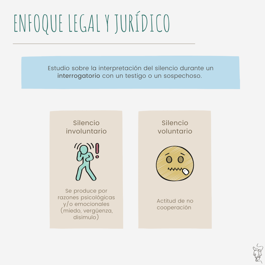 En el ámbito legal se han hecho estudios científicos para analizar la interpretación del silencio durante un interrogatorio con un testigo o un sospechoso. Se han identificado dos tipos de silencio: