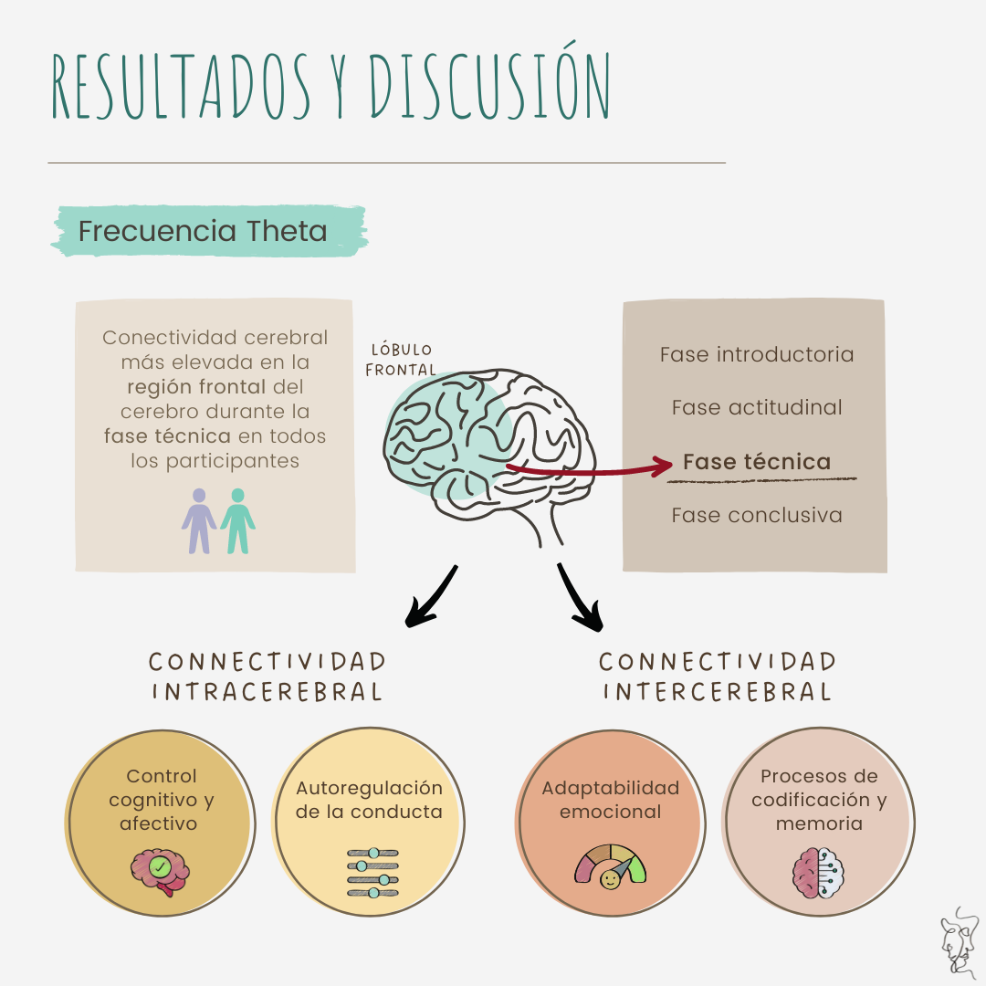 La conectividad intercerebral también demostró ser cambiante a lo largo del progreso de las fases de la entrevista, con índices más altos en la frecuencia delta durante la fase final en comparación con la fase inicial. La condición también resultó significativa, ya que durante las entrevistas cara a cara la conectividad intercerebral fue más alta que durante las entrevistas virtuales.